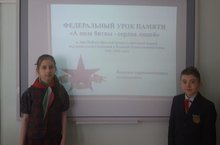 В школе во всех классах прошли уроки мужества. Девизом данных мероприятий стали слова: «Мы, молодое поколение России, всегда будем помнить героические подвиги нашего народа в годы Великой Отечественной войны. Навечно останутся в наших сердцах имена героев, отдавших свою жизнь за наше будущее. Никогда не забудем мы тех, кто, не жалея своей жизни, завоевал свободу и счастье для грядущих поколений. Обещаем упорно учиться, чтобы быть достойными нашей великой Родины, нашего героического народа».