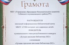 Школьный информационно-библиотечный центр Школы для одаренных детей - победитель муниципального этапа республиканского конкурса "Лучшая школьная библиотека" в номинации "Лучшая городская школьная библиотека". Поздравляем и благодарим библиотекаря школы Каримуллину Эльвиру Расимовну за огромный труд. Желаем дальнейших успехов!