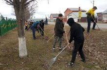 Взяв все самое необходимое, ученики, вместе с учителями дружно вышли на борьбу с беспорядком. Все с радостью приводили в порядок школьную территорию.