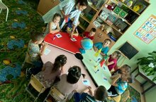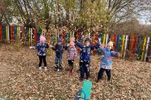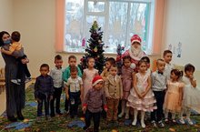 Бәйрәм чыршысын балалар үз куллары белән ясаган шарлар белән бизәделәр.Дети украшали елку шариками которые сделали сами во время режимного момента.
