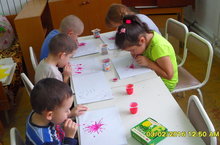 Занятие по рисованию. Рисовали цветок, методом кляксаграфии. 13.02.2016