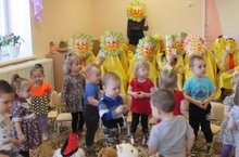 Бүген нәниләр төркемендә әти-әниләр җыелышы үткәрелде. Тәрбиячеләр Хуснулина Г.Г., Каюмова В.А. балаларны йорт хайваннары, кошлары белән таныштыру буенча бердәм эшчәнлек күрсәттеләр. Балалар "Серле янчык" уенын уйнап песи, эт, сыер, әтәч, тавык алдылар, аларның гәүдә өлешләрен, "Кем ничек кычкыра?" уены аша һәр җәнлекләрне тавышларыннан танып әйттеләр."Нәрсә югалды?" уены аша балаларның игътибарлыкларын үстерделәр. Эшчәнлек музыкаль мизгелләр, физкультминуткалар белән үрелеп барды. Әниләр кояш булып киенеп кереп балаларның эшчәнлеген күзәттеләр.