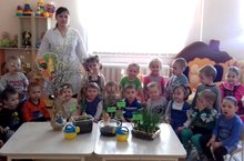 Беренче кечкенәләр төркемендә тәрбияче Сабирова Р.Р. балалар белән берлектә тәрәз төбендә яшел бакча булдырды. Балалар белән суган, бәрәнге, борыч, борчак утырттылар. Җилдә җиргә коелган агач ботакларын суга утыртып, аның бөреләре бүртүен, яфрак яруын күзәттеләр. Көн саен тәрбияче белән берлектә үсентеләргә су сибеп торалар, кирәк булган очракта топләрен йомшарталар.