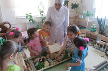 Әти-әниләребезнең оста-уңган булганнары бакчабызда үткәрелгән күргәзмәләрдә ачык күренә. Мифтаховлар гаиләсе үткән ел бик матур ишек алды макеты ясап алып килде. Тәрбияче Фатихова Г.Х. бүгенге көндә дә "Йорт кошлары һәм хайваннары" атналыгы барышында макетны киң куллана. Зәвык белән эшләнгән бу макетка йорт хайваннары, кошларының бар төре дә кергән. Балалар аларның яшәү шартлары, нәрсә белән тукланулары белән танышалар, уйныйлар. Макет рус теле, инглиз телен өйрәнгәндә дә кулланыла. Август киңәшмәсе күргәзмәсендә макетның балаларга уйнар, тирә-юньне танып белү өчен уңайлы булуы билгеләп үтелде. Алтын куллы Мифтаховлар гаиләсенә рәхмәтебезне җиткерәбез, иҗади унышлар теләп калабыз.