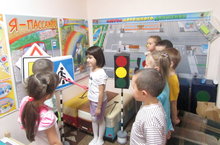 Балаларны юлларның транспорт һәм җәяүлеләр йөри торган өлешләре /тротуар/ белән таныштыру; светофор төсләренең мәгънәләрен аңларга ярдәм итү; күрү сигналлары ярдәмендә йөрергә өйрәтү; хәрәкәт итү чараларының атамалары һәм аларны файдалану максатлары белән таныштыру; транспорт төрләре /җир өсте, су, һава һ.б./ турында беренчел күзаллаулар булдыру; балаларны юнәлешләрне /алга-артка, өскә-аска, уңга-сулга/ аерырга гына түгел, шулай ук күрсәтелгән юнәлештә йөрергә өйрәтү; юл хәрәкәте билгеләренең зурлыгын, төсен һәм формасын, регулировщик таягының төсен ачыклау нигезендә, сенсор сиземләү күнекмәләре формалаштыру; әйләнә-тирәдәге бәйләнешләрне график юл белән сүрәтләргә һәм аларны рәсем, план, схема аша модельләштерергә, хәрәкәтләрнең уклы күрсәткечләрен, маршрут планнарын, схемаларын файдаланып, пространствода хәрәкәт итәргә өйрәтү; юл билгеләрен реаль шартларда өйрәнү; юлларда хәрәкәт ритмының тизлеге арта бару шартларында балаларны үз куркыныч-сызлыкларын /үз-үзләрен саклау/ булдырырга өйрәтү; урамда, җәмәгать транспортында, торак зонасында үз-үзеңне тоту культурасын тәрбияләү максатыннан 14-18 ноябрь көннәрендә "Юлларда иминлик кирәк" атналыгы үткәрелә. Бакчабызда бар эшчәнлек атналык тематикага туры китереп алып барыла. Бүген мәктәпкә әзерлек төркеме балалары тәрбияче Ләйсән Миннехазиевна белән берлектә юл йөрү кагыйдәсен өйрәнү бүлмәсендә урамда үз-үзеңне тоту кагыйдәләрен искә төшерделәр, магнитлы-маркерлы тактада мәктәпкә бару, өйгә кайту юнәлешләрен билгеләделәр.