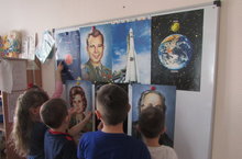 Мәктәпкә әзерлек төркеме балалары бердәм эшчәнлектән тыш вакытта плакатлар ярдәмендә галәм, күк җисемнәре, космонавтлар, беренче хатын-кыз очучы Валентина Владимировна Терешкова, галим Константин Эдуардович Циалковский, конструктор Королев Сергей Павлович турында фикер алыштылар.
