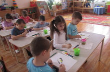Мәктәпкә әзерлек төркеме балалары тәрбияче Хуснулина Гүзәл Габдулхаевна белән бергә иҗади-сәнгать эшчәнлеге барышында кисү, ертып алу ысулларын кулланып умырзая ябыштырдылар.