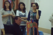 Ике дәүләт телен өйрәтүдә УМК ны куллану 30.10.2015 Мәктәпкәчә яшьтәге балаларга ике дәүләт телен тирәнтен өйрәтүдә УМК ның күрсәтмә, таратма кулланмаларын,аудио-видео язмаларын, эш дәфтәрләрен тәрбиячеләр киң кулланып эшлиләр. Зурлар төркеме балалары белән рус телен өйрәтүче тәрбияче Галиакбарова Алсинә Фаилевна рус телендә урындыкта, өстәлдә өстендә, урындык астында, өстәл астында төшенчәләрен истә калдыру максатынан эш дәфтәрләрен кулланды. Зәвык белән ясалган рәсемнәр, налейкалар ярдәмендә балалар кызсыкынып эшләделәр, аю, куян, песи, эт балаларын үз урыннарына дөрес итеп уртаныштырдылар һәм сорауларга тулы җавап бирделәр.
