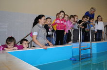 "Спорт - сәламәтлек чыганагы" атналыгы барышында уртанчылар төркеме балалары тәрбияче Саматова Ләйлә Исмәгыйлевна, тәрбияче ярдәмчесе Айгөл Азатовна белән берлектә Саба бассейнына экскурсия оештырдылар. Балаларны бассейн хезмәткәрләре җылы каршы алдылар. Каюмова Фатыйма Суфьяновна балалар, зурлар өчен йөзү урыннары, тренажер залы белән таныштырды. Йөзүнең кеше организмына бик файдалы булуын, төрле тренажерларда шөгыльләнеп мускулларны ныгытып булуын аңлатты.