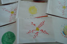 Муса Җәлилгә багышланган атнада уртанчылар төркеме балалары иҗат эшләрен язучының "Кызыл ромашкалар" шигыренә багышладылар. Әлеге эшнең максаты булып: балаларны халык шагыйре Муса Җәлилнең иҗаты белән таныштыру, аның батырлыгына хисләре тәрбияләү; кайчы белән дөрес итеп эш итү күнекмәләрен ныгыту, өлге буенча киселгән кәгазьләрдән альбом битенә ромашка таҗларын ябыштыру һәм краска белән пумала ярдәмендә таҗларга "кан" тамчыларын ясау иде. Шулай ук, балалар рәсем ясау шөгылендә М.Җәлилнең "Сәгать" шигыренә багышлап сәгать рәсемен ясадылар. Балалар бу эшләрне бик зур тырышлык белән башкардылар. Эшләрен сезнең игътибарга да куябыз.