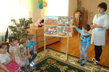 "Урманга сәяхәт" 29.01.2015 Ләйсән Миннехазиевна музыка җитәкчесе Гөлнара Ильдусовна белән берлектә уртанчылар төркеменең әти-әниләр җыелышы барышында математик күзаллауны үстерү һәм музыка эшәчәнлекләрен интегральләштереп "Урманга сәяхәт" темасына балаларның бердәм эшчәнлеген күрсәттеләр. Төрле крашылыклар аша үткәндә, аю һәм куянны туган көннәре белән котларга урман күчтәнәчләрен җыйганда балалар математик биремнәрне үтәделәр. Биек-тәбәнәк, зур-кечкенә, нечкә-юан төшенчәләрен кабатладылар, урмандагы гөмбәләрнең агулы һәм ашарга яраклы булганнарын билгеләп үттеләр, урманда үсүче агачларның исемнәрен искә төшерделәр. Аю һәм куянны туган көннәре белән котлап җыр башкардылар, матур теләкләрен җиткерделәр.