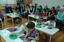 Бакчабызда төркем җыелышлары 23.01.2015 Әти-әниләрне балалар бакчасы тормышы, балалар үзләштерегә тиешле күнекмәләр белән тирәнтен таныштыру йөзеннән төркем әти-әниләр җыелышларында балаларның бердәм эшчәнлекләрен күрсәтү; “Бакча тормышыннан мизгелләр”, “Чыныктыру чаралары”, “Уйный-уный үсәбез”, һ.б. темаларга презентация карау; әкиятләрне сәхнәләштереп күрсәтү кебек чаралар үткәрәбез. 23 январь көнне нәниләр төркемендә әти-әниләр җыелышы вакытында тәрбияче Әнисә Әминовна, Әлфия Камилевна әти-әниләрне балаларның бакчадагы тормышын чагылдырып презентация күрсәттеләр. Балалар белән үткәрелүче бердәм эшчәнлекләр, уеннар, иртәнге гимнастика, үз-үзләренә ярдәм күрсәтү, культура гигиена күнекмәләрен, яңа һөнәрләр үзләштерү мизгелләрен әти-әниләргә җиткерделәр. Балаларны тәрбияләү, сәламәтлекләрен ныгыту, мөстәкыйльлелекләрен үстерү буенча әти-әниләргә киңәшләрен бирделәр. Үсеп килүче яшь буынны тәрбияләүдә гаилә тәрбиясенең йогынтысы зур булуын, гаиләдәге гореф-гадәтләрне, традицияләрне саклап, сәламәт яшәү рәвешен балаларга кече яшьтән төшендерергә кирәклеген аңлатып үттеләр.