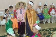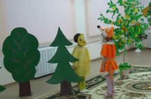 Мы к осеннему празднику, как и пологается, готовились основательно: проводились беседы, экскурсии и т.д. Учитывая все цели осеннего праздника, в этом году подготовительной и старшей группы сценарий праздника была направлена на формирование интонационной стороны речи и дифференциацию эмоциональных состояний радости, грусти, злости, испуга и удивления. Ребята подготовительной группы вместе с воспитателем русского языка Вафиной Л.И. подготовили театрализованный праздник на русском языке «Что за чудо огород!» используя мимические, пантомимические средства и приемы, показывая умения согласовывать мысли, чувства, действия. Ребята помогали садоводу найти семена, собрать осенний урожай, наполнить лукошко овощами и т.д. По ходу праздника дети старшей группы под руководством муз.руководителя Яхиной Г.И. пели хороводы, отгадывали загадки, «варили» суп и компот, в танце «Под зонтиками» старались показать настроение осеннего дождя.