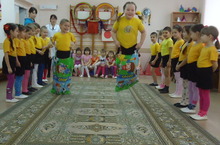 Балалар уеннарда һәрберсе актив катнашы. Физкультура шөгыльләрен алып баручы Аубакирова Гөлназ тәрбиячеләр белән берлектә балаларның яшләрен, мөмкинлекләрен истә тотып уеннарны төрләндереп уйнаттылар.