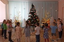 Новый Год - это самый волшебный, веселый праздник, которого дети ждут, веря в сказку и чудо. 24 декабря в нашем детском саду прошли новогодние утренники. Красиво украшенный зал, нарядная елка, подарки, Дед Мороз и Снегурочка, Леший и Баба Яга, Медвежонок, Зайчонок и множество других сказочных персонажей ожидали детей дошкольного учреждения. Ребята погрузились в мир чудес, приключений, невероятных превращений и сюрпризов. Дошколята танцевали, пели песни, читали стихотворения, водили хороводы, с удовольствием участвовали в играх и конкурсах. Дети получили массу положительных эмоций и долгожданные подарки из рук Деда Мороза.
