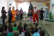 Яңа ел бәйрәмен балалар да әти-әниләр дә бик көтеп алдылар. 29 нчы декабрь көнне чыршы бәйрәме эстафетасын ясле төркеме балалары башлап җибәрде. Көн дәвамында һәр 6 төркем дә чыршы тирәли әйләнеп Кыш бабайны, Кар кызын каршы алып күңелле бәйрәм итте. Балалар янына төрле әкият геройлары - бүре, Кызыл калфак, убырлылар, шүрәлеләр, Чижик исемле клоун килеп балаларның күңелләрен ачтылар. Кыш бабай белән Кар кызы исә, һәр балага - малайларга машина, кызларга курчак өләшеп чыктылар.