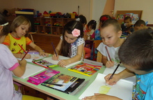Рәсемдә зурлар төркеме балалары "Кайнар икмәк" темасына рәсем ясаган вакытлары.