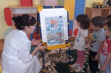 Сказка в жизни детей занимает очень важное место. С её помощью дети очень рано начинают говорить и учатся грамотно выражать свои мысли. Благодаря сказкам речь малыша становиться более эмоциональной, образной, красивой. В первой младшей группе вниманию детей был представлен настольный театр по русской народной сказке "Курочка Ряба". Дети с большим интересом слушали сказку, отвечали на вопросы.