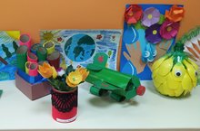 В течение марта-апреля 2022 года в нашем детском саду был реализован проект: «Вторая жизнь ненужным вещам». Итогом реализации данного проекта стала выставка творческих работ родителей и воспитанников нашего детского сада из бросового материала.В последние годы проблема утилизации мусора стоит, среди прочих экологических проблем, на первое место. По мнению специалистов, в настоящее время на каждого жителя планеты приходится в среднем около одной тонны мусора в год.Почти каждый день мы выбрасываем пластиковые бутылки, одноразовую посуду, упаковку от продуктов, всевозможные коробочки, трубочки, старые фломастеры, газеты, фантики и т.д. Но, эти ненужные, на первый взгляд, вещи могут получить новое применение, стать основой для оригинальных детских поделок или увлекательных игрушек, обрести вторую жизнь. Родители и воспитанники нашего детского сада приняли активное участие в выставке: «Наши руки не для скуки!», проявив выдумку, фантазию и творческие способности.Отслужившие свой срок вещи обрели вторую жизнь. Некоторые из них вполне могу украсить интерьер квартиры, другие стать оригинальным сувениром, а третьи любимой игрушкой для ребёнка. А сколько радости и неподдельной гордости было в глазах детей, когда они рассказывали о совместном с родителями творчестве.