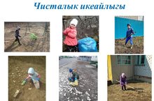 "Чисталык икеайлыгы" игълан ителде. Балалар әйләнә-тирәне чистарту, ямьләндерүдә теләп катнашалар. Өлкәннәргә булышып, хезмәт күнекмәләрен ныгыталар.