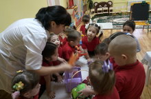 "Һөнәрләр илендә" 09.12.2019 "Һөнәрләр илендә. Әти-әниемнең һөнәре" атналыгы барышында балалар белән һөнәр ияләре турында әңгәмәләр, бердәм белем бирү эшчәнлекләре үткәрелде, атналык темага хикәяләр укылды, шигырьләр өйрәнелде, һөнәр ияләренә багышлап рәсем күргәзмәсе оештырылды. Икенче кечкенәләр төркеме балалары белән "Шифаханә", "Автопарк", "Кафе" га сәяхәт оештырылды. Балалар пешекче, табиб, машина төзәтүче, машина йөртүче һөнәрләре белән таныштылар. Үзләрен пешекче, табиб, машина йөртүче итеп, рольләргә кереп уйнадылар.