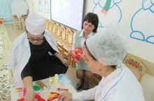 Бүген бакчабызда сюжетлы-ролле уеннарны оештыру, аларны үткәрү буенча семинар-практикум үтте. Тәрбияче Хуснулина Г.Г. икенче кечкенәләр төркемендә "Сәламәтлек үзәге" уенын оештыру, ролләрне бүлешеп балаларны үзара дус-тату уйнарга күнектерү серләрен аңлатты.