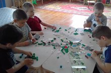 Җәйге чор балалар өчен иң күңелле вакыт. Урамда уйнарга да, иҗади шөгыльләнергә дә була. Зурлар төркеме малайлары схеманы карап, өйрәнеп вак лего уенчыкларыннан йортлар, агачлар, машиналар төзү белән мәшгульләр.(Гыйлемханова Ә.Ә.)