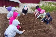 Намуслык, хезмәт сөючәнлек, кешеләргә мәрхәмәт, хөрмәт, Туган җиргә мәхәббәт сыйфатлары балага геннар белән генә дә күчми. Моңа билгеле бер максатлы тәрбия эше нәтиҗәсендә генә ирешелә. Татар халкының "Нәрсәгә өйрәнсәң, шуны куарсың" дигән мәкальле бар. Кечкенәдән үк кешене файдалы эшкә күнектерергә кирәк. Шушы хезмәт тәрбиясен истә тотып без уртанчы төркем балалары, тәрбияче Сабирова Р.Р. белән , үзләре утырткан борчак түтәленнән чүп утадылар һәм аларга су сиптеләр. Бердәм башланган, күмәк эшнең нәтиҗәсе дә озак көттермәс.