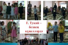 Габдулла Тукай - безнең күңелләрдә 26.04.2018 Г.Тукайның тормыш һәм иҗат юлы белән таныштыру; балаларда Г.Тукайның күпкырлы иҗатына кызыксыну уяту, таныш әдәби сюжетлар буенча балаларның Г.Тукай иҗаты буенча алган белемнәрен камилләштерү; шагыйрьгә, шагыйрьнең иҗатына карата мәхәббәт, ихтирам хисләре тәрбияләү; Г.Тукай әкиятләре, шигырьләре аша балаларда матур әдәбият белән кызыксыну, аларны укырга теләк тәрбияләү, тырышлык, игътибарлылык,сабырлык кебек сыйфатлар тәрбияләү максатыннан "Бөек шагыйребез - Габдулла Тукай" атналыгы үткәрелде. Йомгаклау чарасы "Г.Тукай - безнең күңелләрдә" исеме астында үтте.