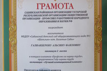 Поздравляем председателя первичной профсоюзной организации МБДОУ Сабинский детский сад №1 "Шатлык" Галиакбарову Альсину Фаиловну, занявшее 2 место в конкурсе плакатов «Профсоюз за охрану труда», приуроченном Году охраны труда в номинация «Лучший агитационный плакат» по пожаробезопасности. Желаем дальнейших успехов!
