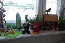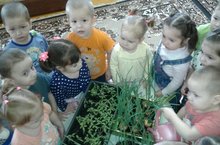 Кояшның беренче, язгы нурлары карау белән балалар тәрбияче апалары белән берлектә тәрәз төбендә нәни бакча ясыйлар. Суган, сарымсак, борчак, укроп, петрушка, бодай утыртып аларның үсүләрен күзәтәләр. Яфракларның төсе, формасын чагыштырып аермалыкларын күрергә өйрәнәләр.