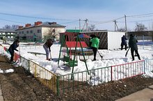 Бакчабызның биләмәсен кардан арындыру, тирә-юньне чистарту, тәртипләү, матурлау эшен башлап җибәрдек. Һәркем бу эштә теләп катнаша.