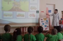 "Утырып йөрибез,йөзәбез,очабыз." 19.03.2018 Транспортның төп төрләре белән таныштыру: су, һава, җир транспорты. Сүзлекне активлаштыру: транспорт, машина йөртүче, самолет йөртүче, утырып бару, йөзү, очу. Транспортны кулланышы ягыннан (йөк ташучы, пассажирлар йөртүче) аера белергә өйрәтү. Транспортның төп өлешләрен чагыштыра белү күнекмәләр формалаштыру (кабина, арба, тәгәрмәч, руль һ.б.) Гомуми сөйләм күнекмәләрен, хәрәкәт һәм сөйләм координациясен камилләштерү. Күзәтүчәнлек, активлык, мөстәкыйльлек, олыларны хөрмәт итү кебек сыйфатларны үстерү максатыннан, икенче кечкенәләр төркемендә әйләнә-тирәлек белән таныштыру эшчәнлегендә тирәнтен үзләштерелде.(Тәрбияче Сабирова Р.Р).