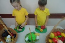 Бүген 25 сентябрь көнне мәктәпкә әзерлек төркеменә йөрүче балалар белән , тәрбияче Фасхиева Гөлгенә Тәлгатовна ,танып белү шөгылендә көзге уңыш турында сөйләштеләр, яшелчәләргә карата бирелгән табышмакларга җавап эзләделәр. Шөгыль ахырында кызлар яшелчә муляжлары ячрдәмендә винегрет һәм яшелчәле салатның ничек ясалуын аңлаттылар.