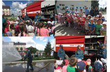Бүген бакчабызга янгын сүндерү бүлекчәсе хезмәткәрләре кунакка килделәр. Алар балаларны янгын сүндерү бүлекчәсенең кайчан, ничек барлыкка килү тарихы белән таныштырдылар, янгын куркынычсызлыгы кагыйдәләрен искәрттеләр, табышмаклар ярдәмендә балаларның алган белемнәрен ныгыттылар. Янгын сүндерү бригадасы балаларны янгын сүндерү машинасы, анда нинди җайланмалар барлыгын аңлаттылар һәм су сиптереп күрасәттеләр.