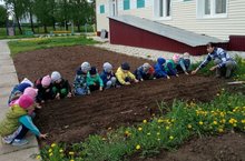 Балаларга хезмәт тәрбиясе бирү, яшелчәләрнең үсүен күзәтүне күзаллап яшелчә бакчасында ел саен балалар катнашында эш алып барыла. Кечерәк төркемнәрдә тәрбияче эшләвен күзәтеп, өлкәнрәк төркемнәрдә балалар тәрбиячеләргә булышып чөгенер, кишер, суган, борчак, кукуруз, помидор, кыяр, кабак үстерәләр. Коры көннәрдә су сибеп, төпләрен йомшартып, чүп үләннәрен утыйлар. Яшелчәләрне танып, аера белергә өйрәнәләр. (Гилемханова Ә.Ә.)