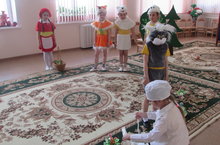 Алсинә Фаиловна җитәкчелегендә зурлар төркеме балалары эшчәнлектән тыш вакытта өйрәнелгән "Язгы урман маҗаралары" әкиятен рус телендә сәхнәләштереп уртанчылар, мәктәпкә әзерлек төркемнәре балаларына күрсәттеләр. Кызыл калфак, Айболит, урман җәнлекләре табигатьне сакларга, урман-кырларда, су буйларында ял иткәннән соң чүпләрне калдырмыйча җыеп түгәргә кирәклеген аңлаттылар. Әкият геройлары образга кереп куркәм чыгыш ясадылар, тамашачылар көчле алкышлар белән рәхмәтләрен җиткерделәр.