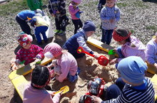 Как много интересных игр и занятий можно провести в песочнице с детьми! Кругом много дополнительного материала- камешки, палочки, шишки, листочки, цветные стеклярусы, формочки, ведерки и савочки - все это способствует развитию воображения, мышления и творчества. Дети второй младшей группы очень любят играть на песочнице. (Сайфутдинова Г.З.).