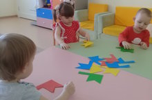 Организация игровых упражнений, дидактических игр на различение цвета, величины, формы предметов, а также развитие первых пространственных ориентировок создают необходимую основу для успешного формирования познавательной деятельности малышей. Цель дидактической игры "Разноцветные флажки": учить различать цветовые тона путём сравнения их друг с другом и прикладывания к образцу, совершенствовать зрительное восприятие, приучать точно и старательно выполнять поручения. Детям предлагаются цветные флажки четырёх основных цветов. Они берут любой флажок, называют его цвет и находят такой же, используя приём приложения. (Воспитатель Шакирова Э.А., 1 младшая группа)