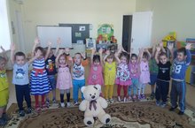 Бүген икенче кечкенәләр төркеме балалары янына аю килеп кызыклы физкультминутка өйрәтте. (Сайфутдинова Г.З.).