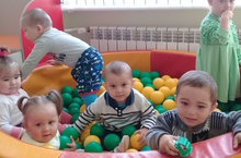 Игры в сухом бассейне укрепляют опорно-двигательный аппарат, развивают моторику, и, конечно же, ребёнок получает море положительных эмоций и огромный запас энергии, игры также помогают удовлетворить естественную потребность ребёнка в движении. В сухом бассейне тренируются различные мышечные группы, в том числе и формирующие осанку. Таким образом, происходит постоянный массаж всего тела, осуществляется стимуляция тактильной чувствительности. Эффекты, получаемые организмом ребёнка при использовании сухого бассейна: массажный эффект, сенсорный эффект, закаливающий результат, расслабляющий эффект, тренирующий эффект. Малыши ясельной группы (воспитатель Шакирова Э.А.)