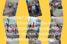 Бу сүзләрдән соң кошлар төрле якларга очып китәләр,чүгәләп,җим чүплиләр,тагын очалар.Тәрбияченең"Кошлар,ояларыгызга очып кайтыгыз!"дигән сүзләреннән соң балалар уз урыннарына кире кайталар.