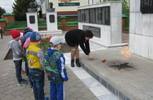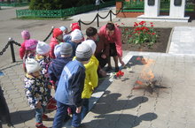 Без бүген мәктәпкә хәзерлек төркеме балалары белән (тәрбиячеләре Абубакирова Р.Г. һәм Хузина М.П.) мәңгелек ут янында экскурсиядә булып кайттык. Билгесез солдат һәйкәленә балалар чәчәкләр куйдылар. Бер минут тынлык белән сугыш кырында үлеп калган солдатларны искә алдылар.