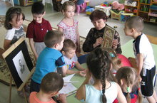 Яшь буынны тәрбиләүдә әдәби әсәрләр куллану нәтиҗәле алымнардан санала. Матур әдәбият әсәрләре баланы дөньяны танып белергә, табигатьнең матурлыгын күрергә, туганлык хисләре уятырга, үсемлекләр, хайваннар дөньясын яратырга өйрәтә. Бакчабызда даими рәвештә балалар язучылары әсәрләрен эшчәнлекләрдә киң кулланып эшлибез. "Балалар әдипләре" атналыгы кысаларында зурлар төркемендә (тәрбиячеләре Гараева Мәдинә Мансуровна) яраткан әдипләребез әсәрләренә нигезләнеп эшләнгән мультфильмнар, әкиятләр карадык. Бөек шагыйребез Г.Тукайның әдәпле булырга өйрәтүче әкият-шигырьләре күңелләрдә матур эз калдырды.