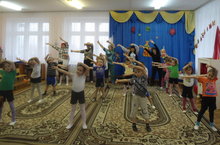 А это - дети подготовительной группы на занятии английского языка. Дети повторяют за педагогом элементы пальчиковой игры. Пальчиковая гимнастика необходима для поднятия настроения и развития мелкой моторики рук, что благотворно сказывается на увеличении лексического словарного запаса детей.