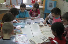 Дети рассматривают книги А.С.Пушкина.