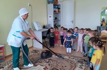 Сегодня дети подготовительной к школе группы поздравили сотрудников детского сада с профессиональным праздником дошкольного работника. Дети показали мини-сценку про дружный, сплочённый коллектив детского сада.