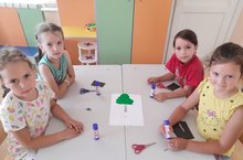 В средней группе воспитателем Султановой Г.Г. было проведено занятие по художественно -творческой деятельности (аппликация) «Красивые флажки». Дети учились работать ножницами:правильно держать,сжимать и разжимать кольца,а также резать полоску бумаги по узкой полосе на одинаковые полоски -флажки.Кроме того,закрепляли приемы аккуратного наклеивания,умение чередовать изображение по цвету,развивали чувство ритма и цвета.