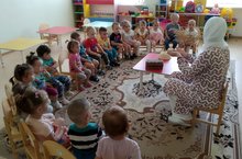 Бүген бакчабызда Корбан Бәйрәме билгеләп үтелде. Тәрбиячеләр тарафыннан балаларга Алланың барлыгын, берлеген, дини йолаларыбызның саклануы, кирәклеге, изгелек төшенчәләре турында аңлатылып китте. Корбан итеннән аш әзерләнде, авыз ителде.