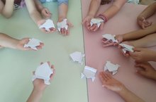 Сегодня в нашем детском саду прошел праздник "День бумаги и фантика". Ребятишки сделали из фантиков разноцветные веера, а из бумаги лягушек и самолетиков, на которых отправились в путешествие в разноцветный мир в "Царство бумаги". Педагоги смогли закрепить и расширить знания детей о свойствах бумаги, вызвали у детей желание быть активными во всех делах; развили эстетический вкус, испытали чувство веселья и радости.